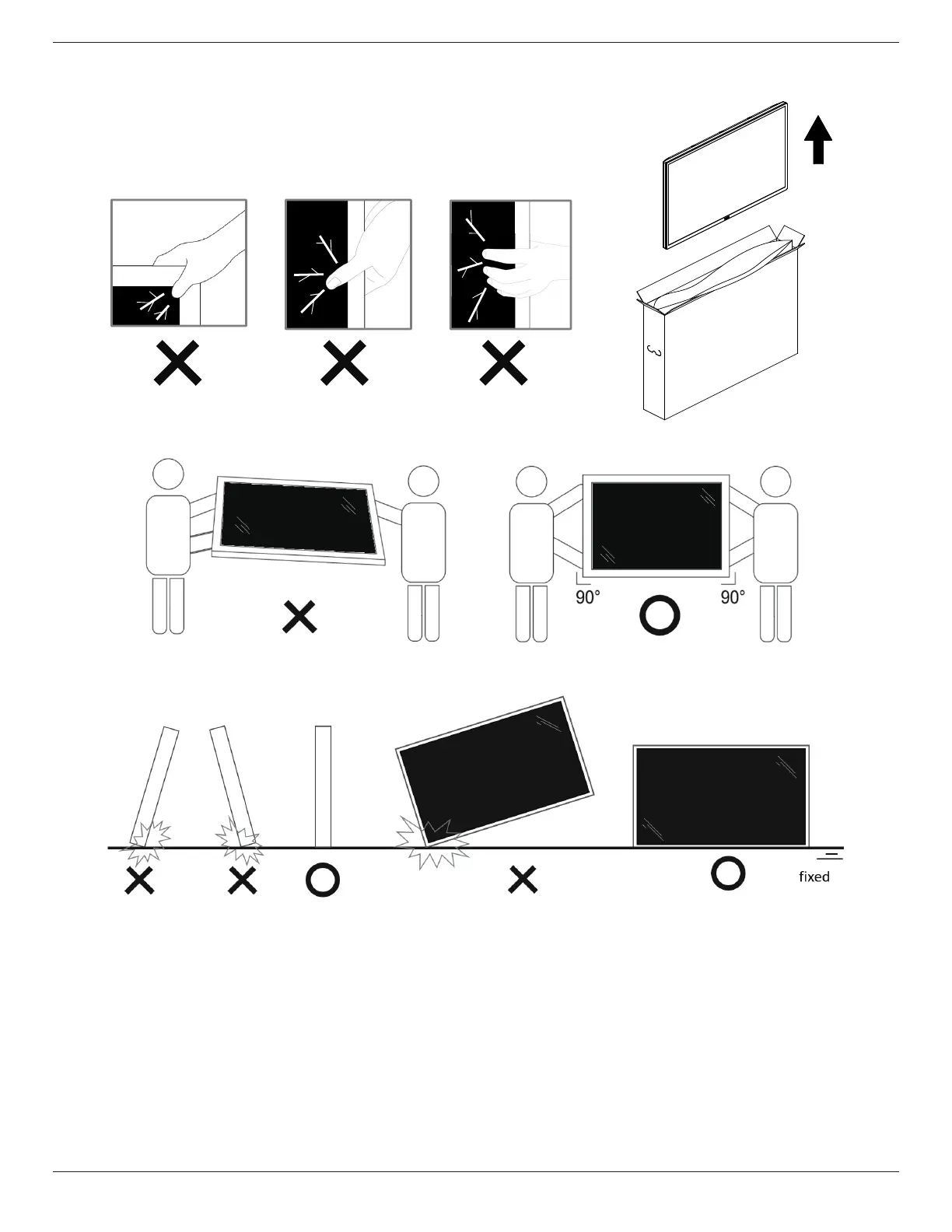• When removing the display from the box, leave the protective bag inside and take care not to touch the glass of the display to