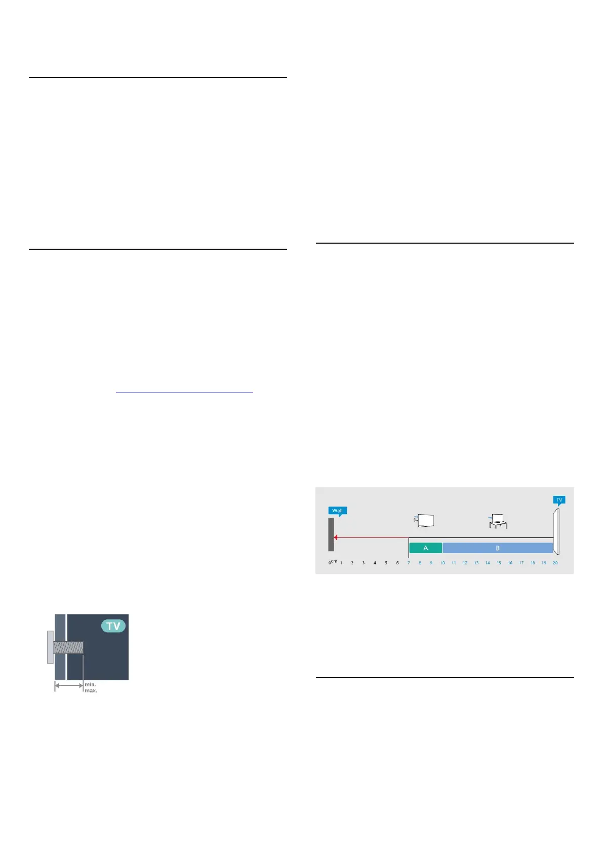 A. Bij montage aan een muur, plaatst u de TV tussen 7