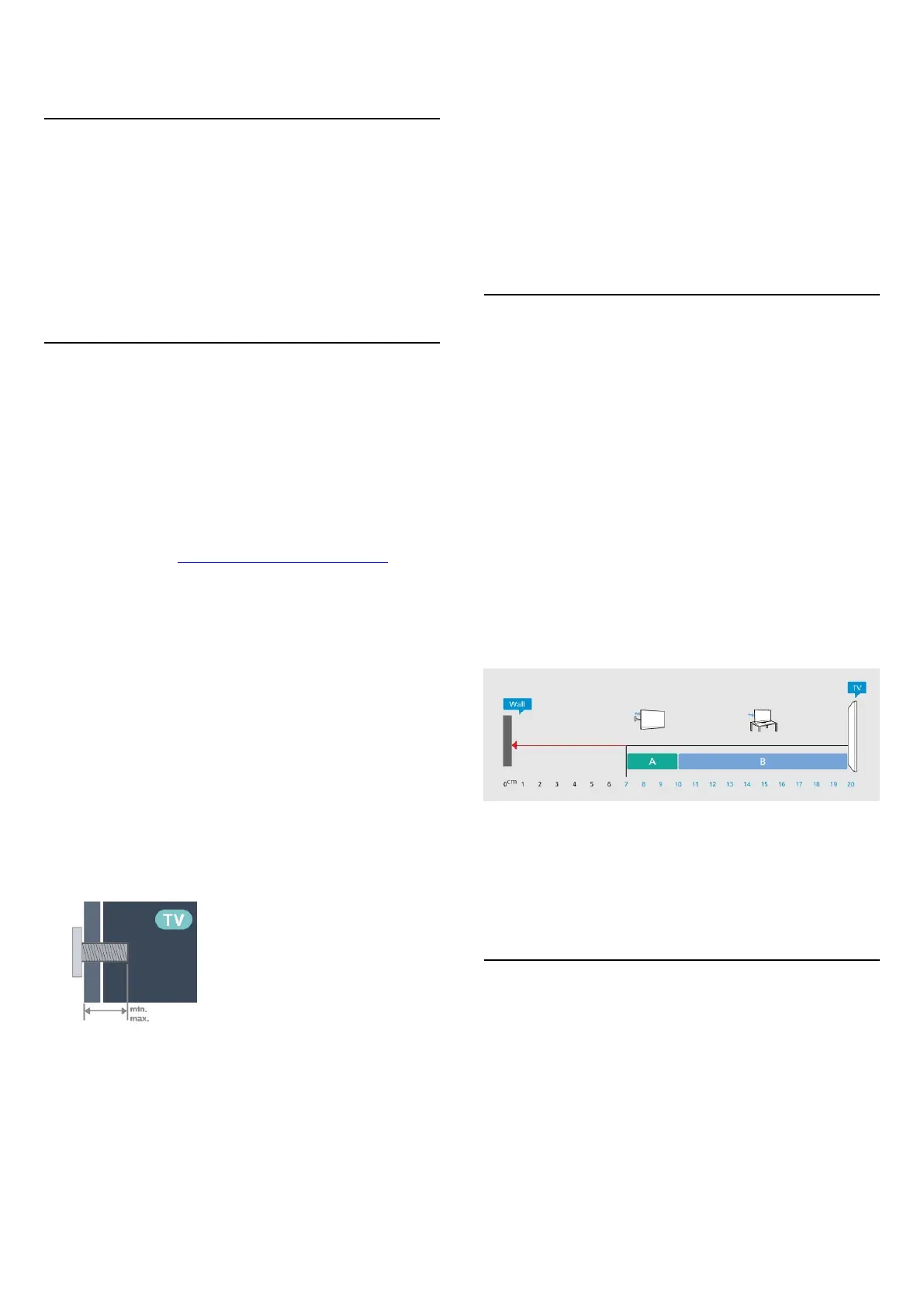 A. Bij montage aan een muur, plaatst u de TV tussen 7