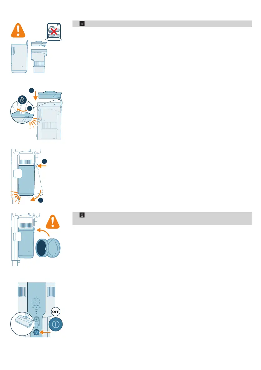 9 Reassemble the filter in the dust bucket. Rotate the filter clock-wise to fix it in