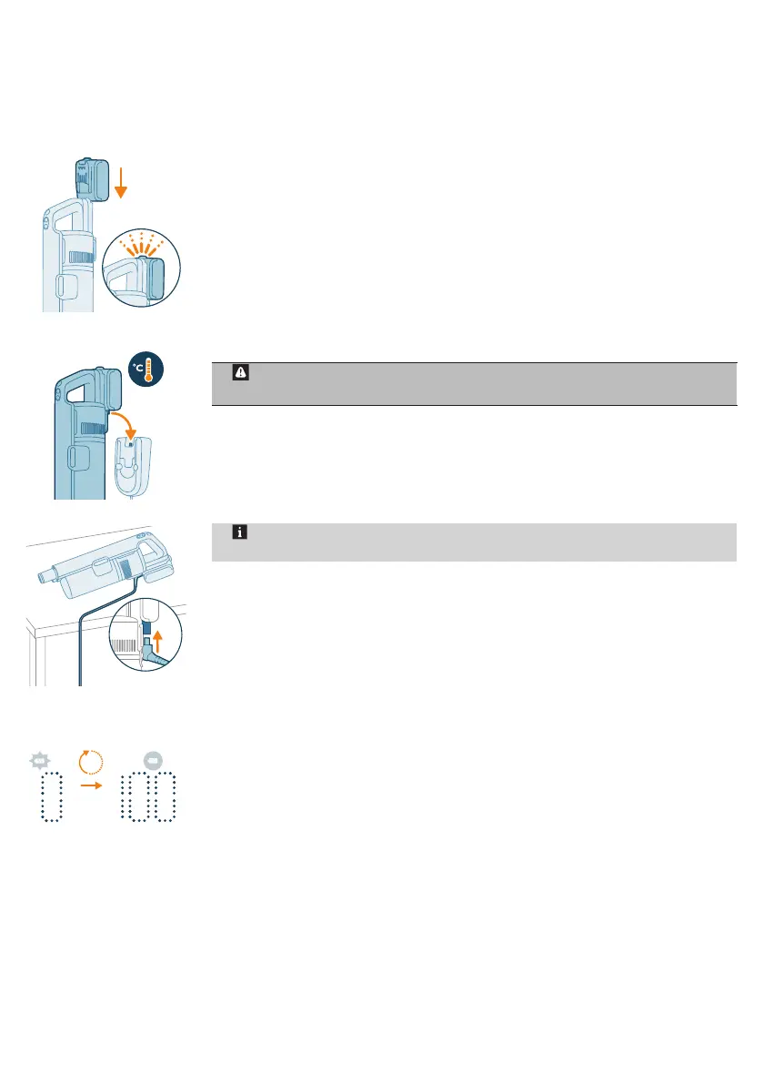 1 Attach the battery pack to the main body of the appliance, ensuring a secure