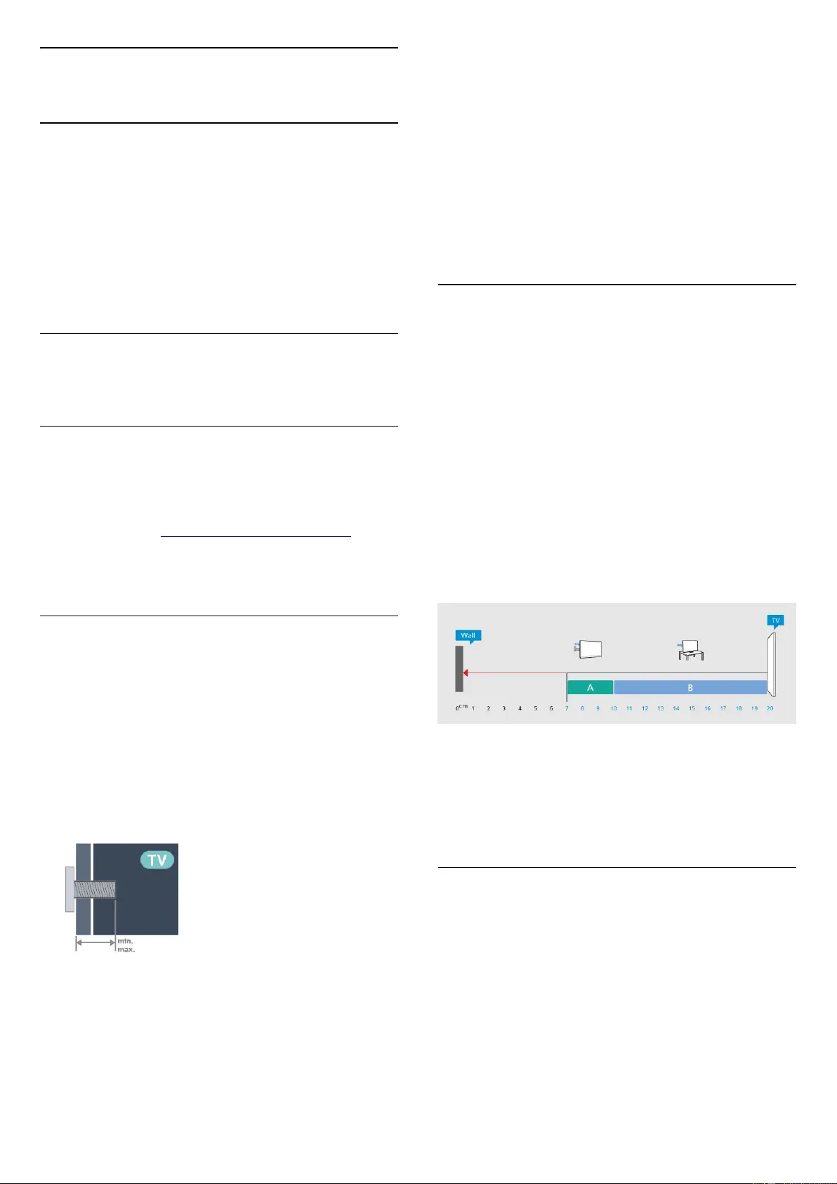 A. Bij montage aan een muur, plaatst u de TV tussen 7