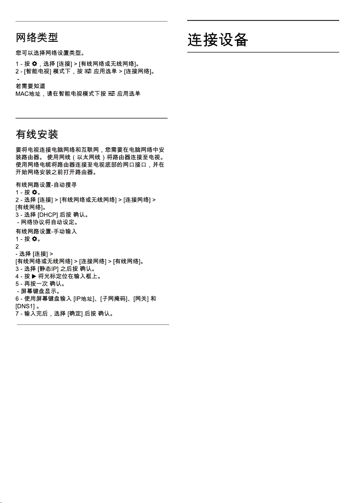 - 电视设置 。