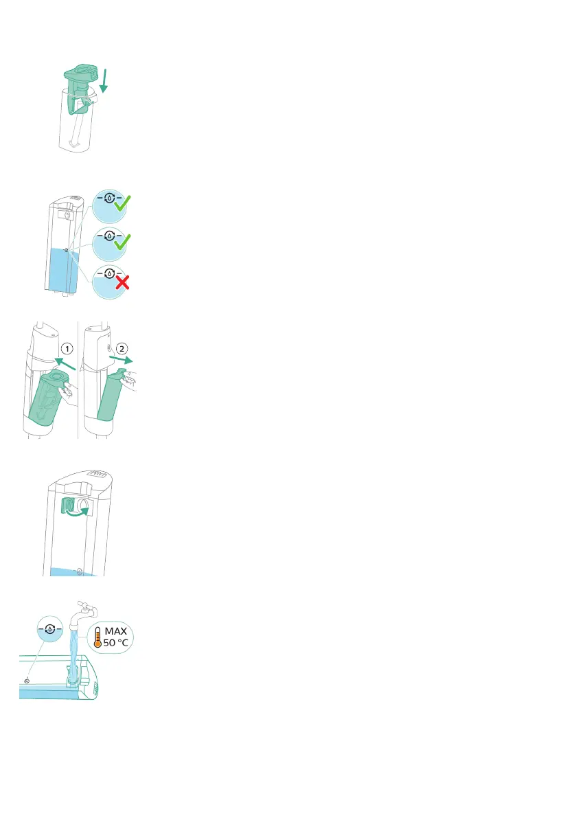 6 Naplňte nádržku na čistou vodu, nachází-li se hladina vody pod značkou