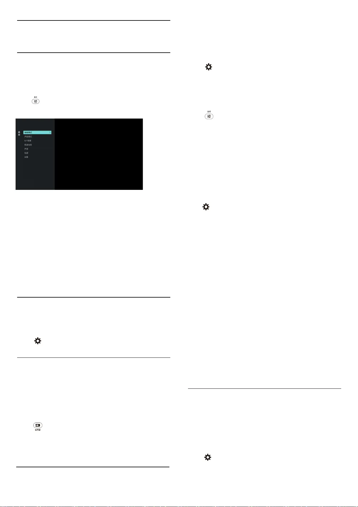 菜单可帮助您设定频道,更改画面和声音设置,以及设置
