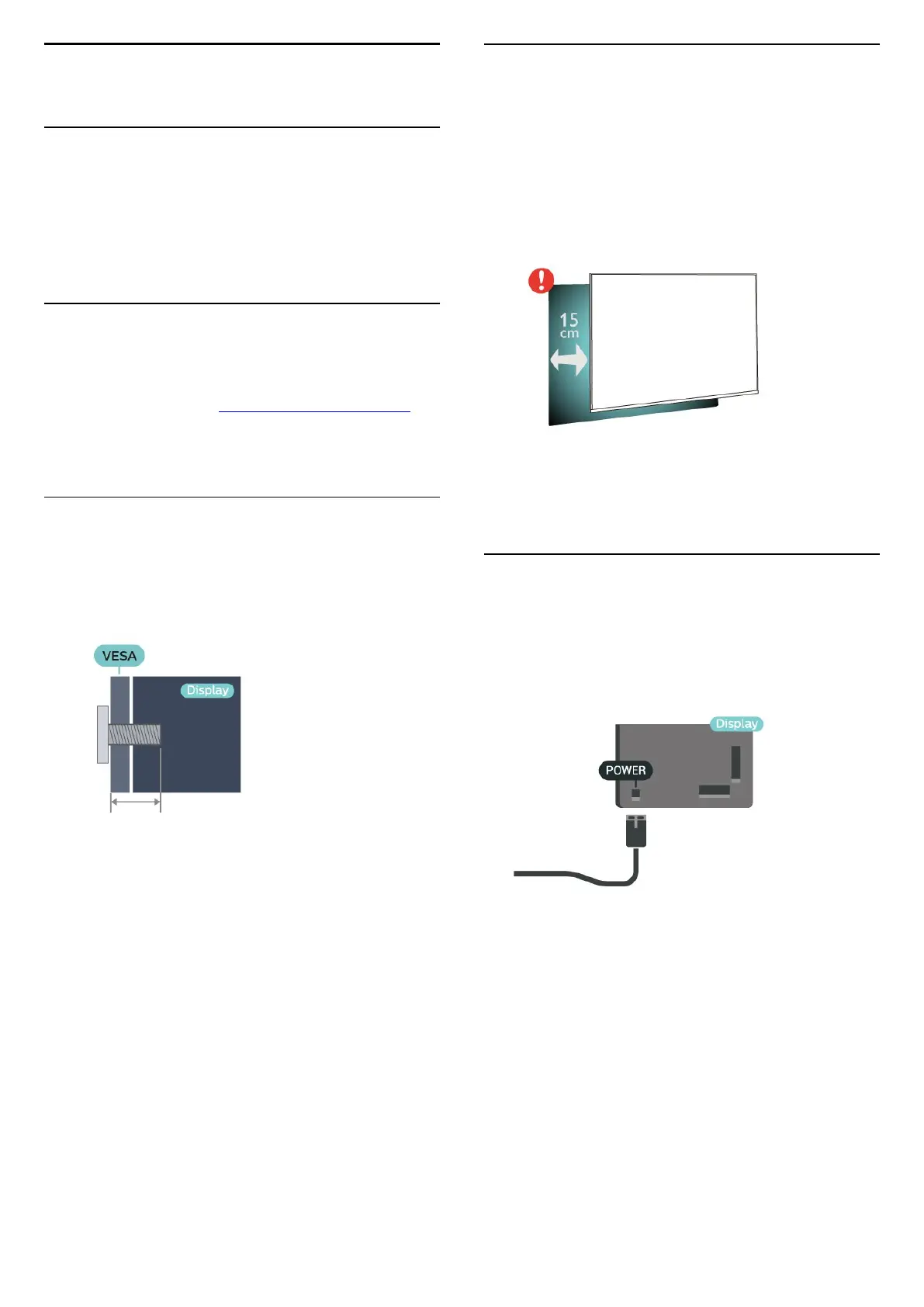 • 當進行壁掛時,顯示器的擺放位置應距離牆面達 15