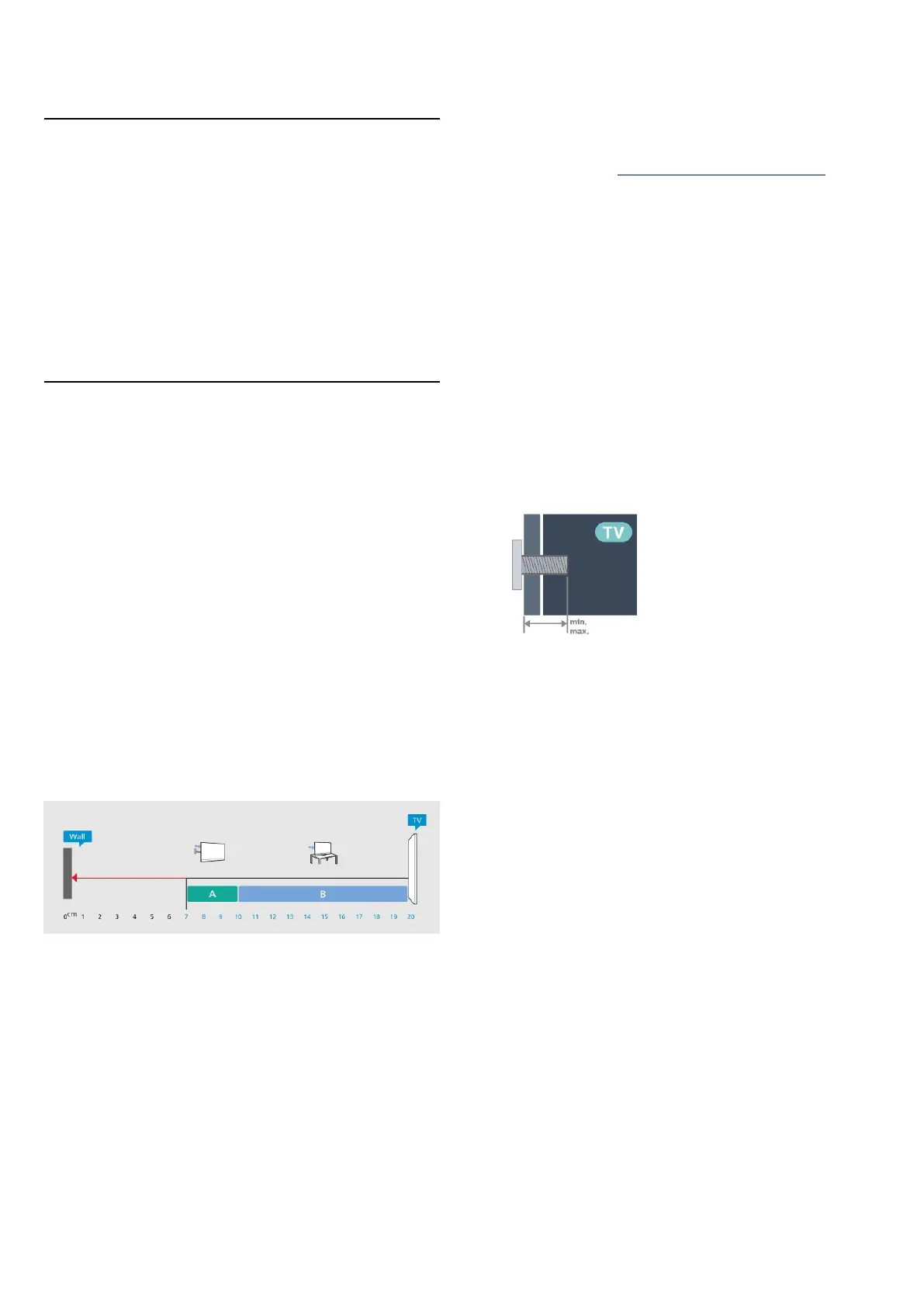A. Bij montage aan een muur, plaatst u de TV 7 tot