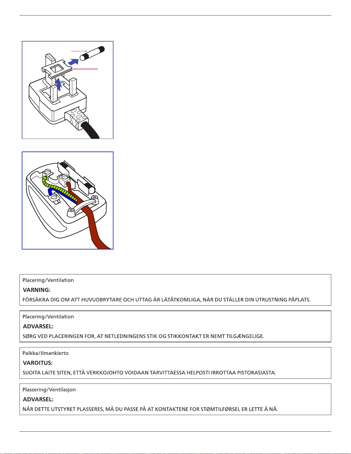 如果主插头含有保险丝,其额定值应为 5A。如果使用的插头没有保险丝,则配电板上的保险