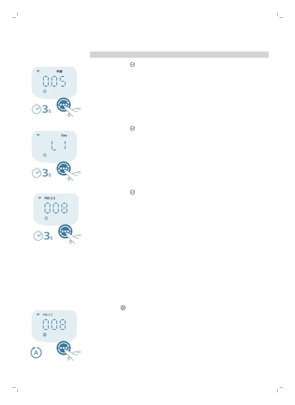 3 Press and hold button again to switch display indicator back to PM2.5.