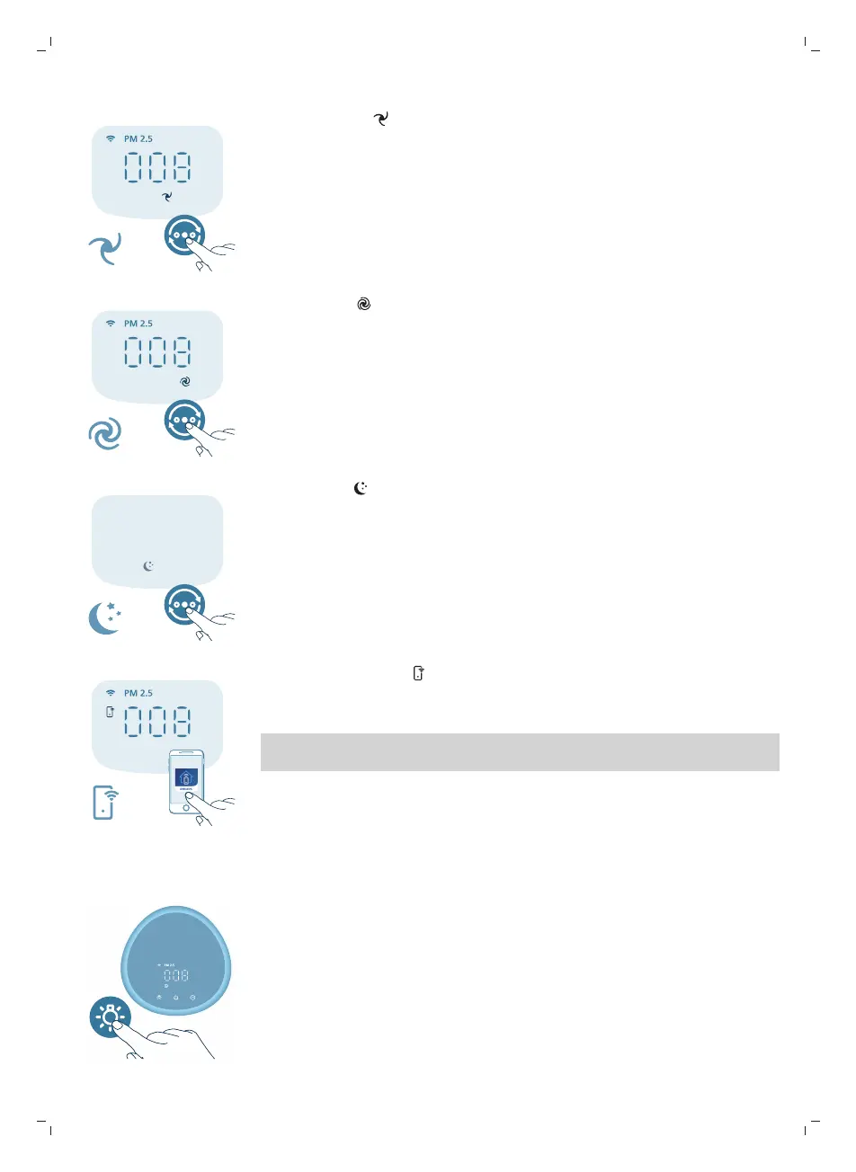 Sleep mode ( ): The air purifier operates quietly at a low speed. After 3