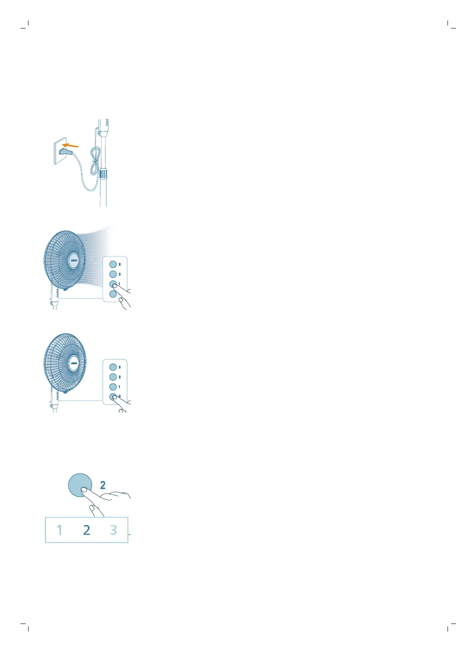 2 Press the 1/2/3 button to switch on the fan. The appliance beeps once.