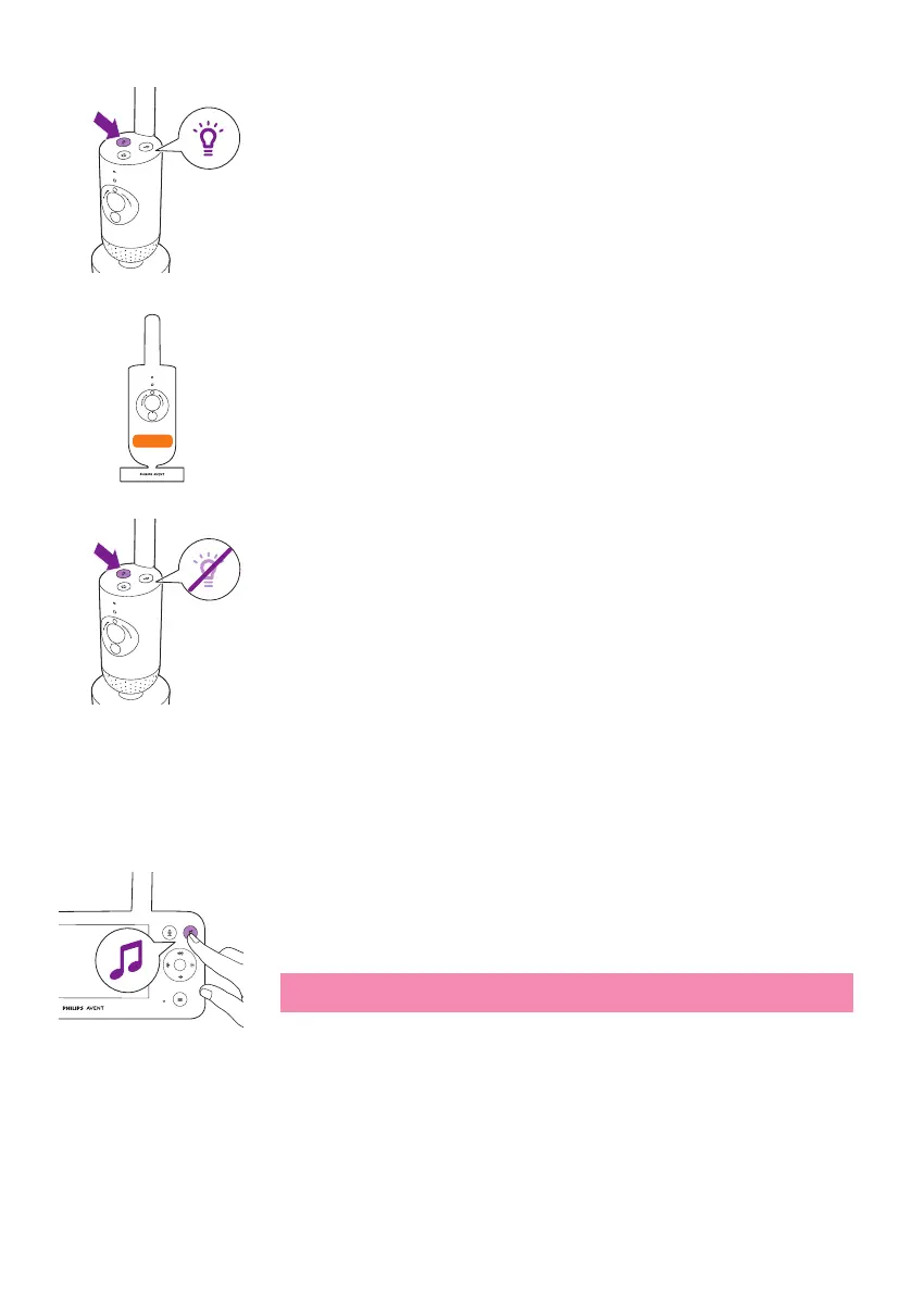 1 Druk kort op de nachtlampknop op de babyunit om de
