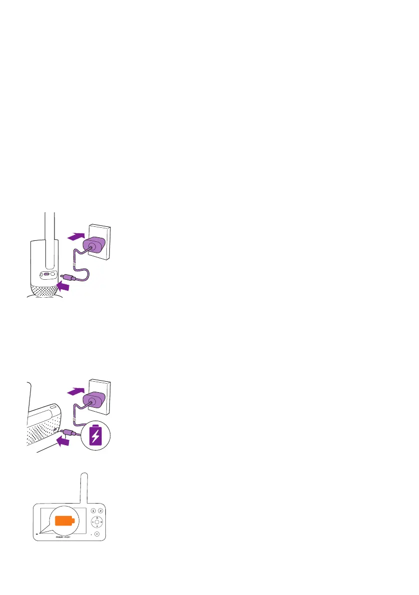 Steek de voedingsadapter in de babyunit en het stopcontact�