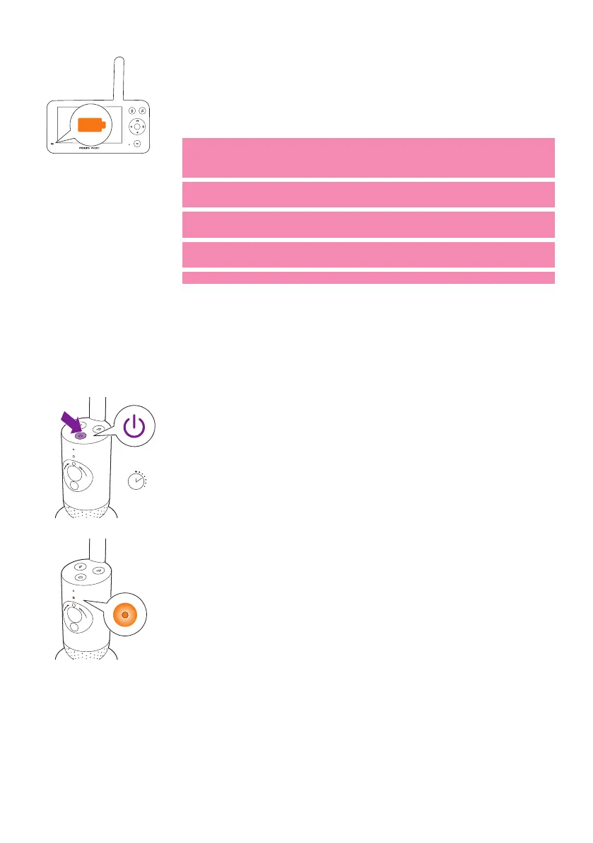 2 Als de babyunit is ingeschakeld, wordt het indicatielampje oranje om