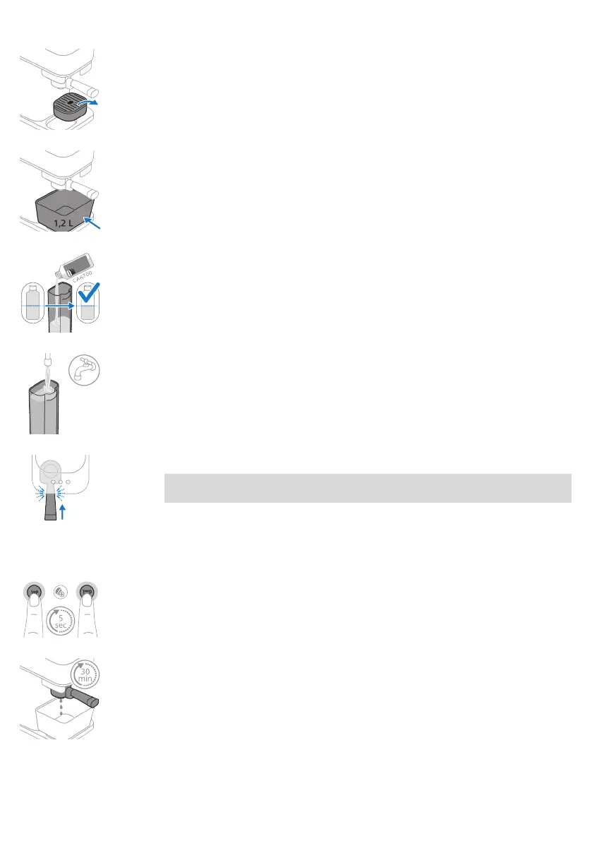 Opmerking: Het portafilter moet zijn geplaatst om het ontkalkingsproces te