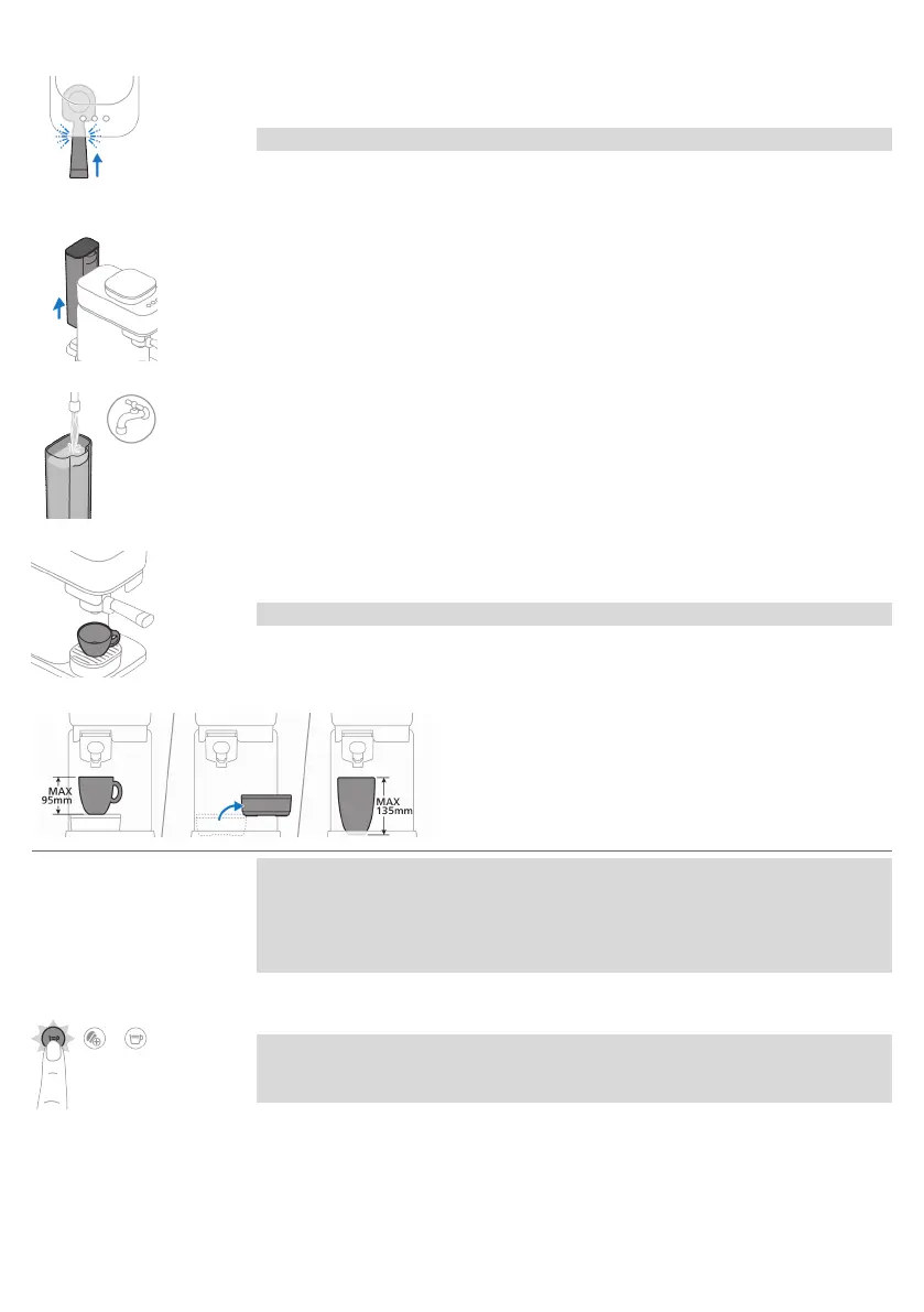 4 Remplir le réservoir d’eau fraîche et le remettre dans la machine.