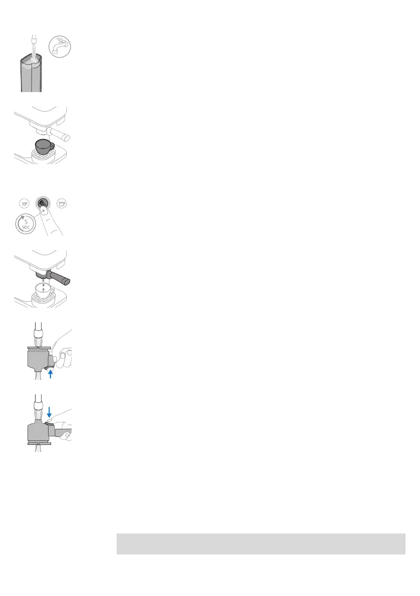 Note: The portafilter cannot be cleaned in the dishwasher as this will cause