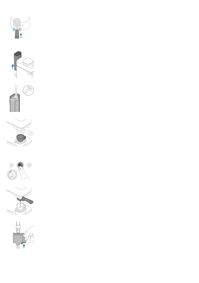 6 La machine chauffe et commence à rincer le diffuseur avec de l’eau qui coule