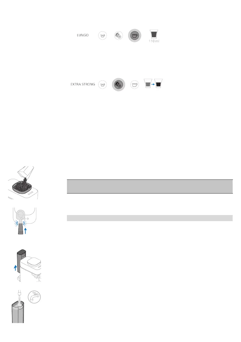 extra sterke koffie te gebruiken, selecteert u eerst een espresso of lungo door op