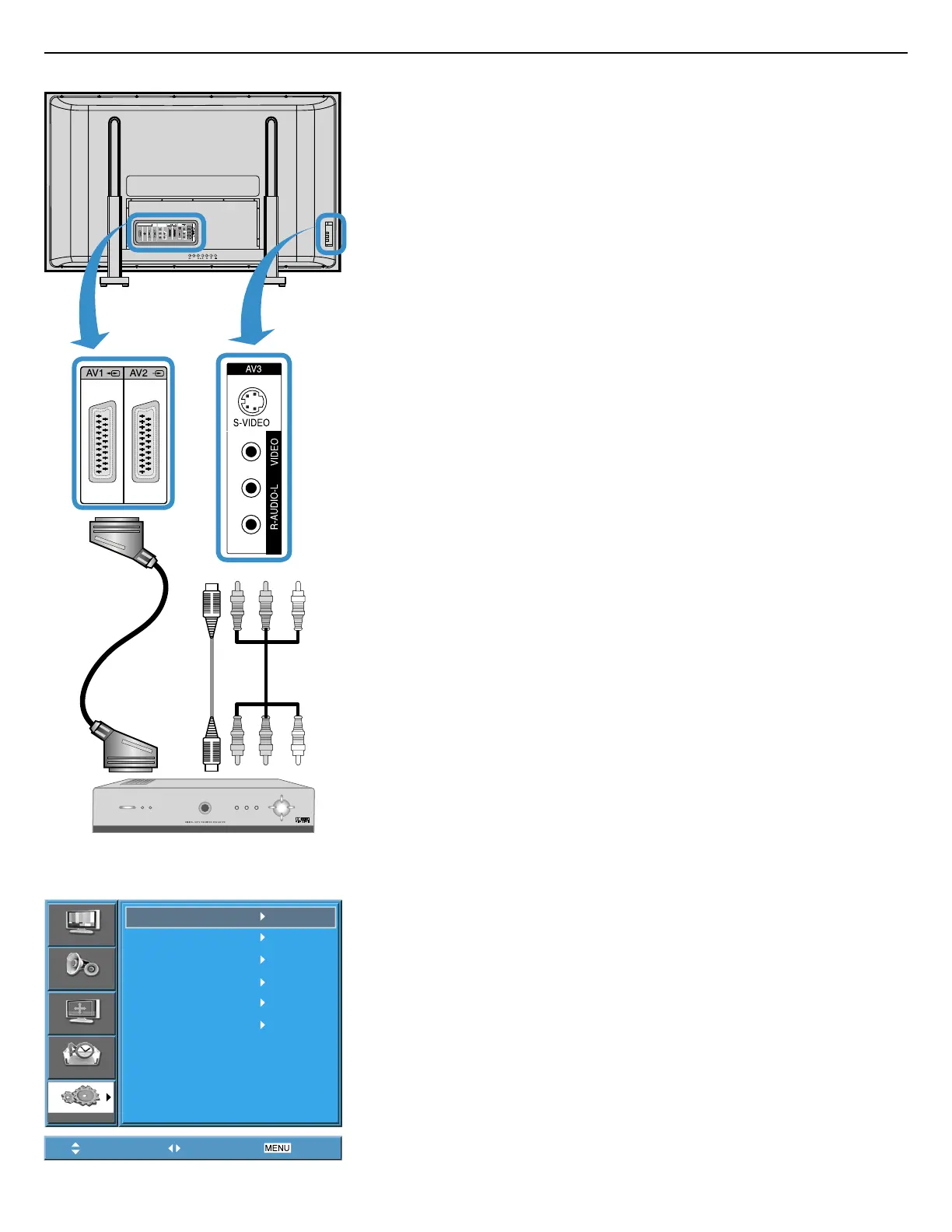 • Select [AV 1 (Scart), AV 2 (Scart) or AV3 (S-Video)] by pressing the “AV”