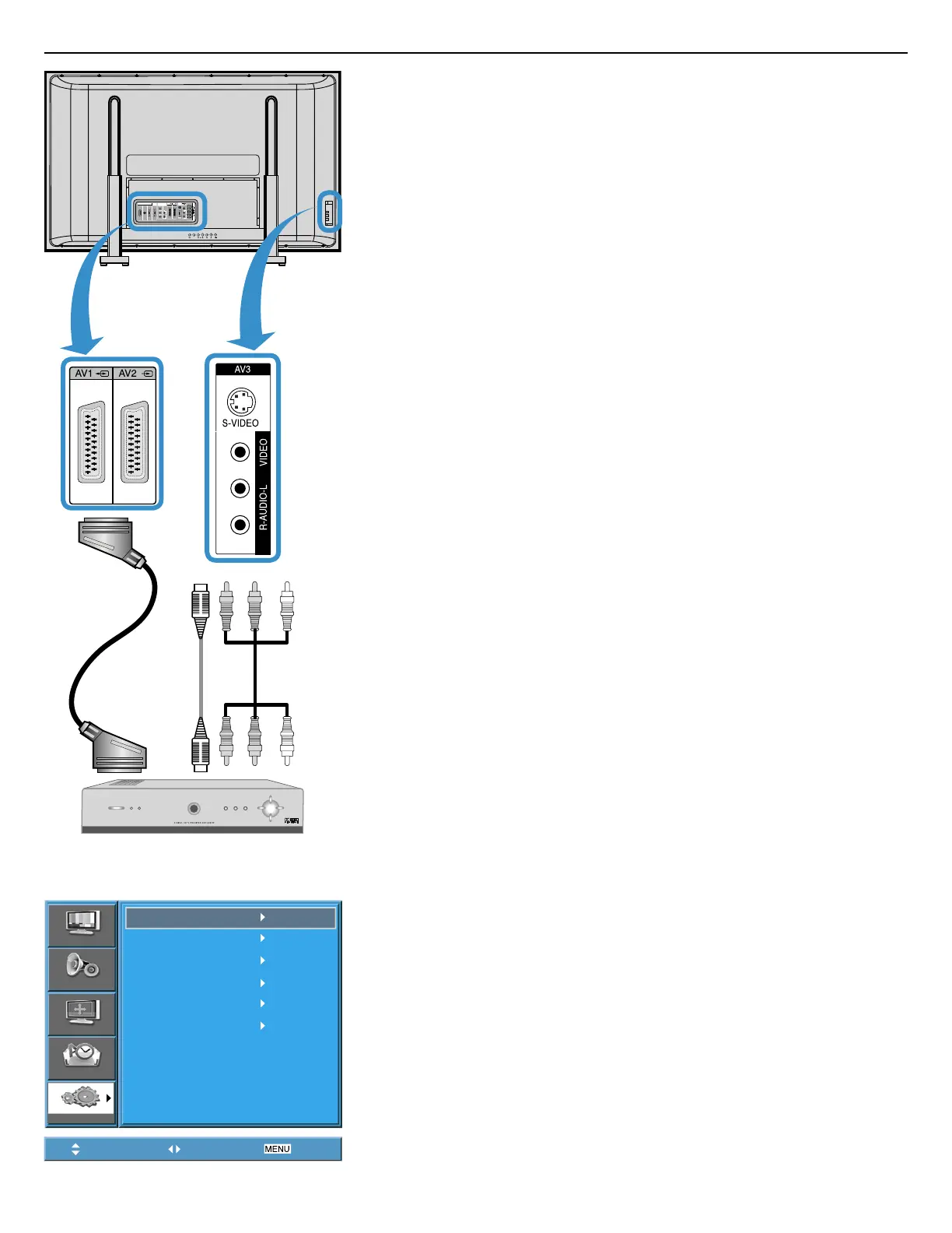 • Select [AV 1 (Scart), AV 2 (Scart) or AV3 (S-Video)] by pressing the [AV]