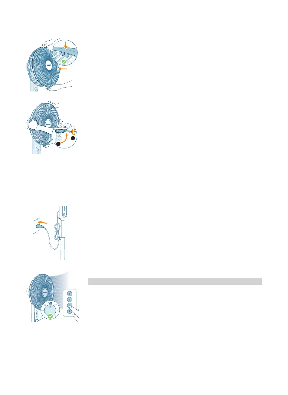 chỉnh khóa dưới cùng trên lồng quạt và sử dụng tua vít để cố định chặt lồng