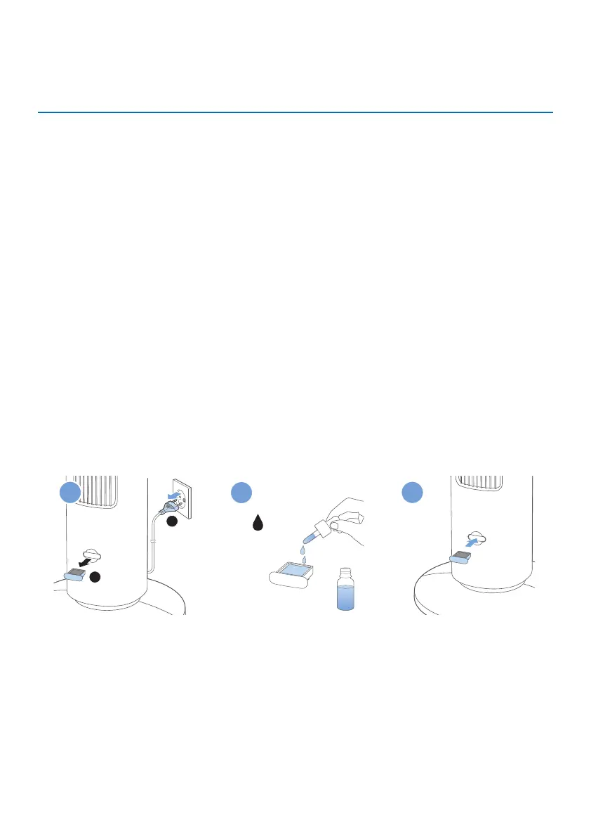 2 Druppel 2-3 druppels essentiële oliën op het meegeleverde aromapad.