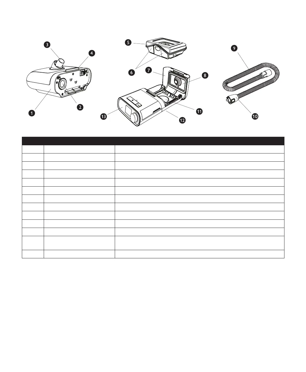 9 Flexible Heated Tubing (optional) The optional heated tube connects from the humidier to the patient’s mask.