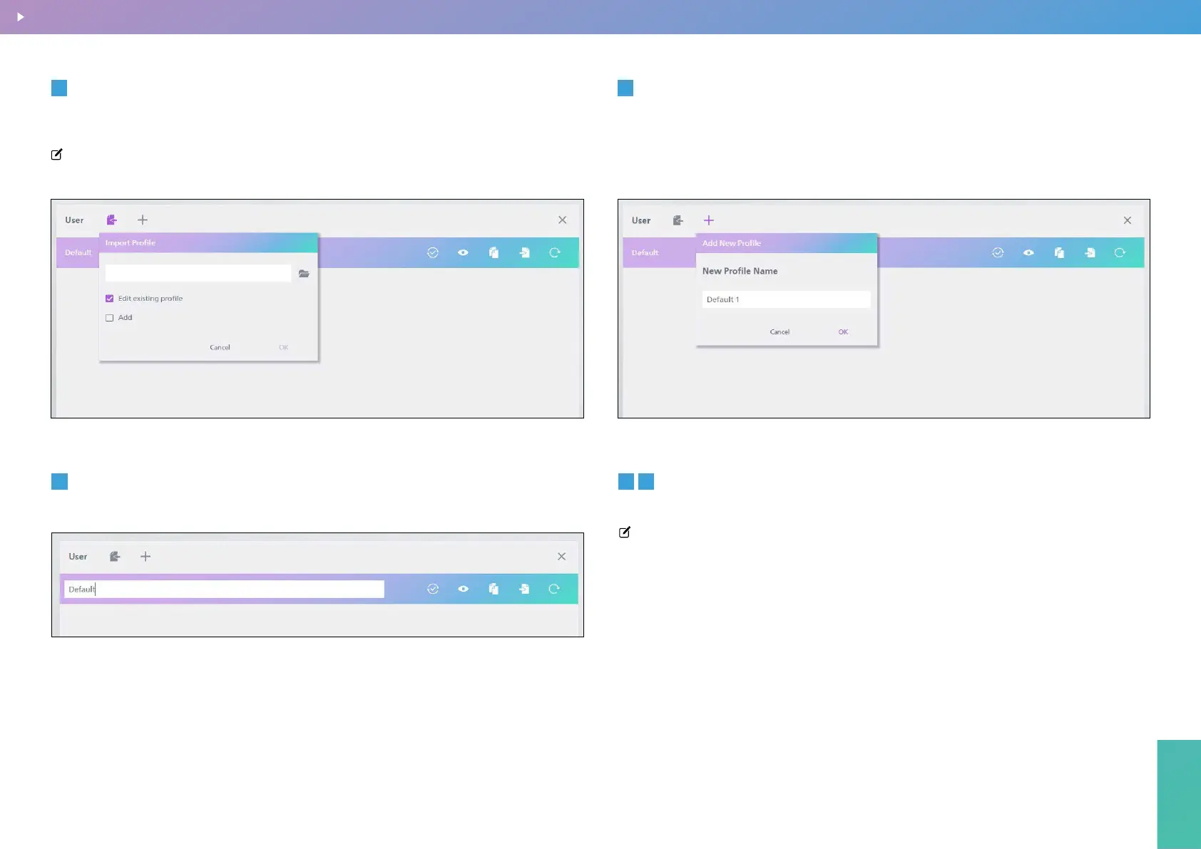 Click the + icon, enter the name of the new prole in the pop-up window, then click [OK]