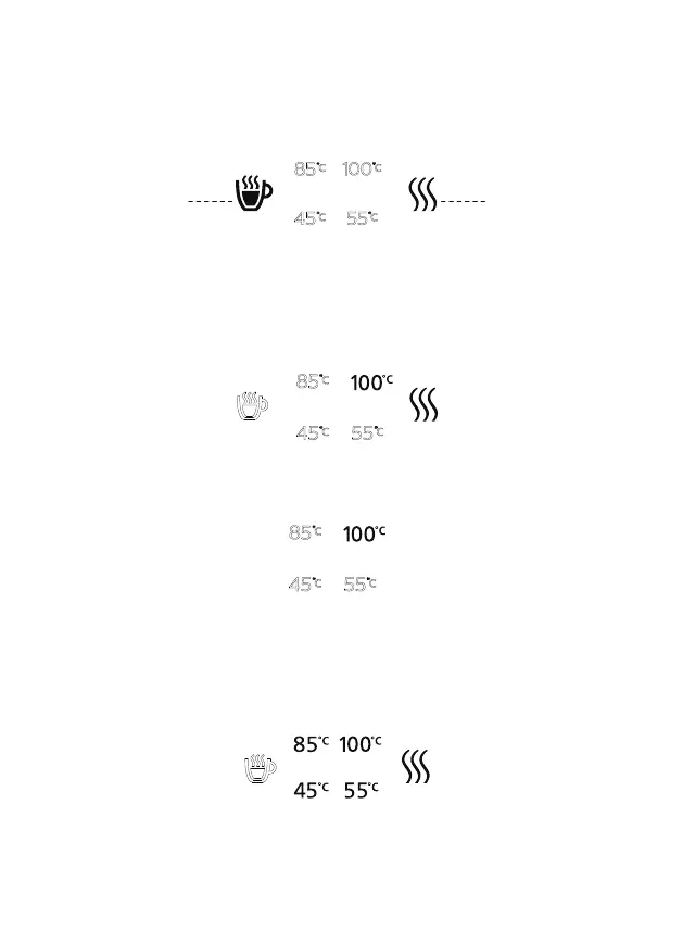 溫度選擇:輕觸「燒水」鍵選擇加熱溫度,選擇100℃/85℃/55℃/45℃對應的溫