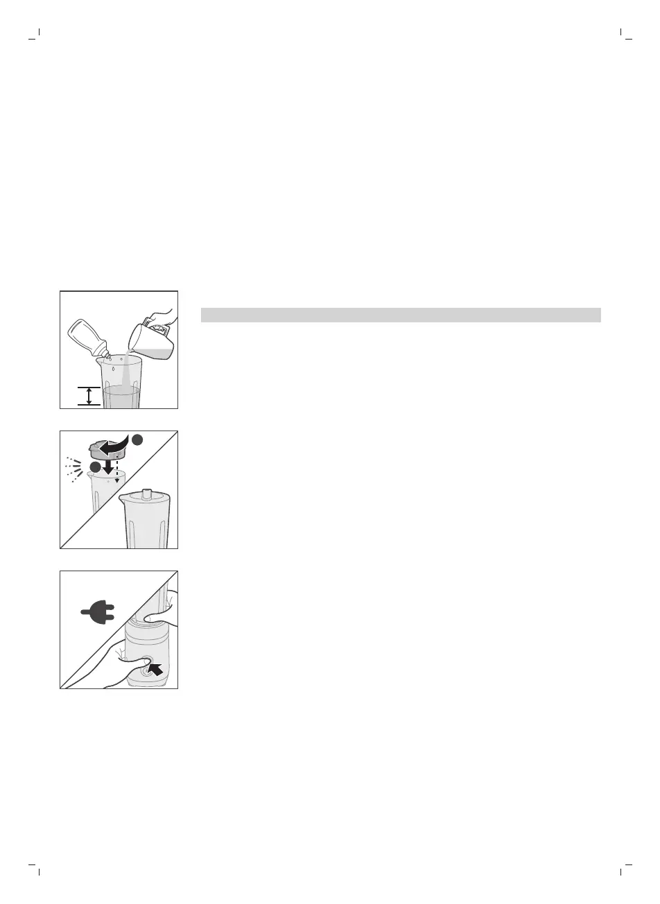 1 Añada detergente y agua a la jarra de la batidora.