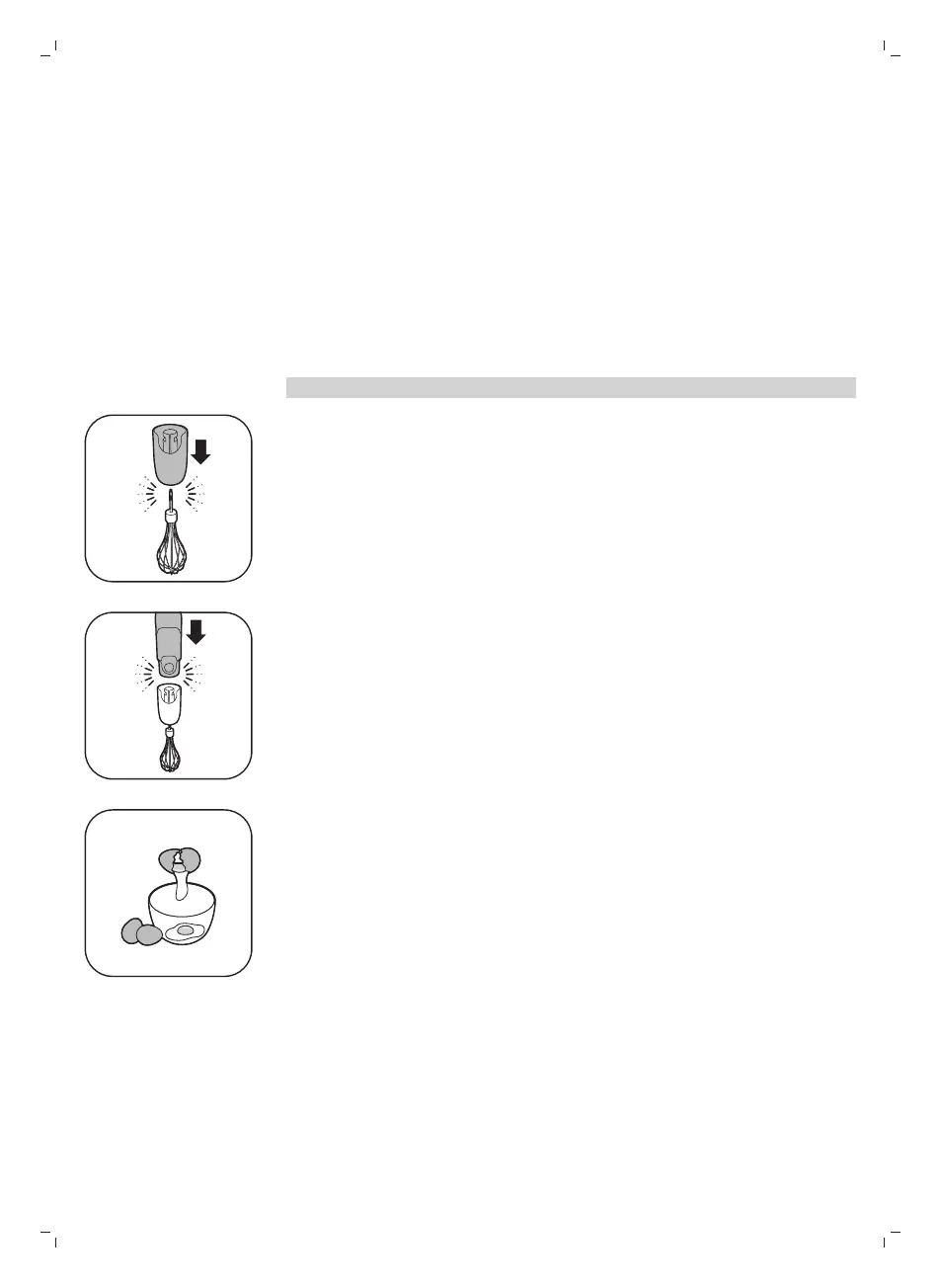 1 Attach the whisk to the whisk gear unit (‘click’).