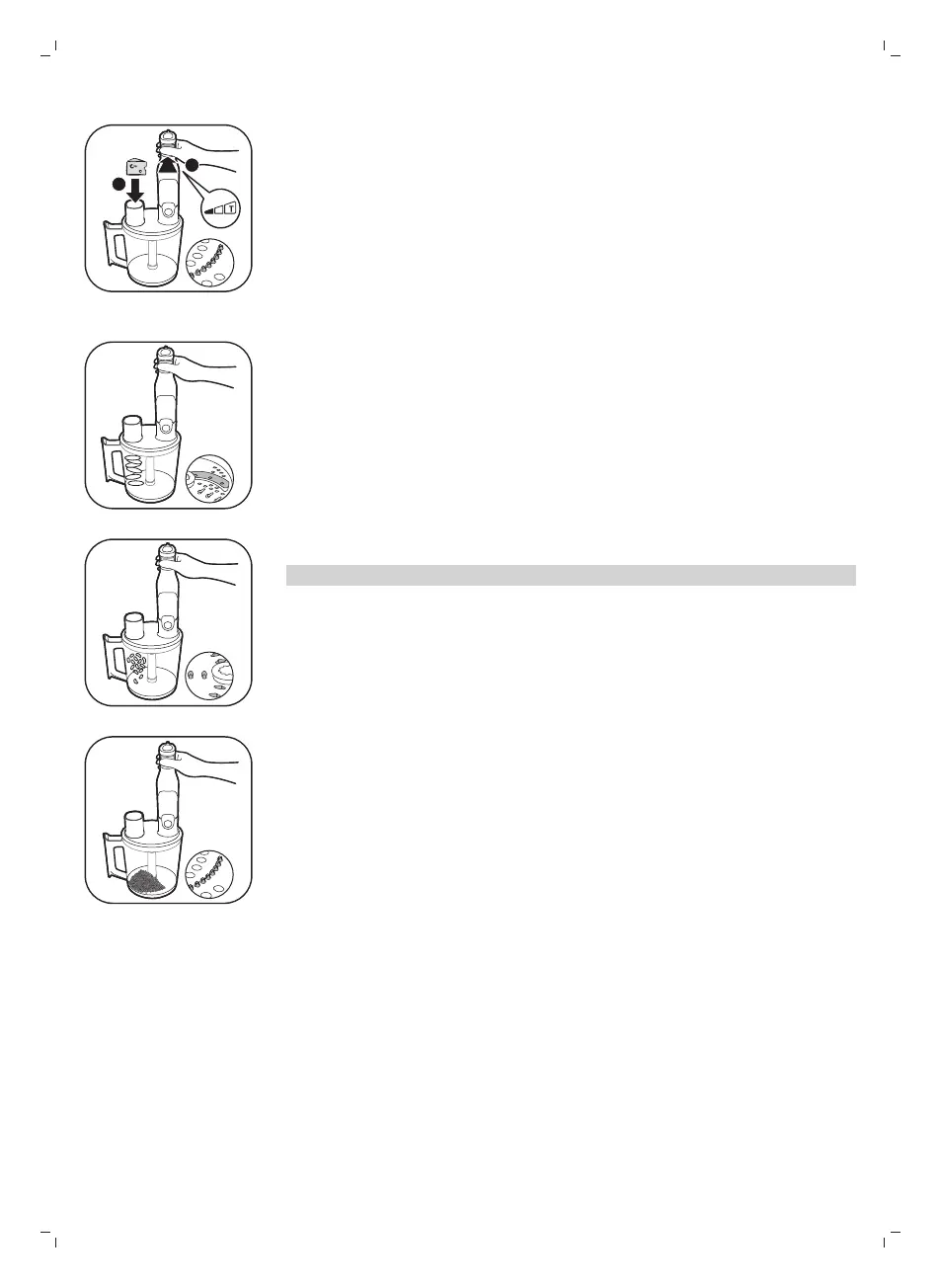 Los ingredientes procesados se recogen en el recipiente.
