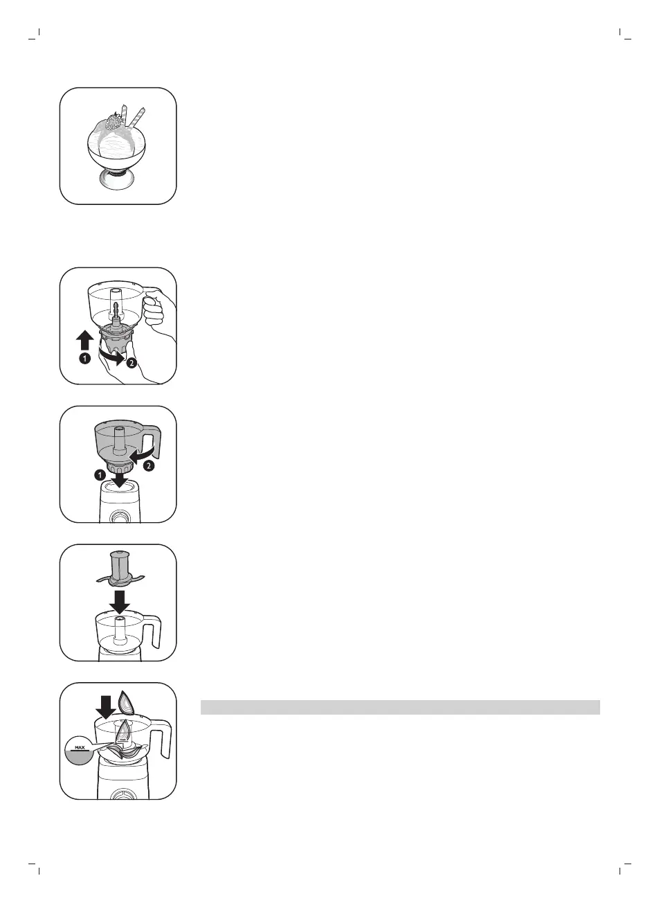 1 Turn the coupling unit anti-clockwise to lock it to the chopper bowl.