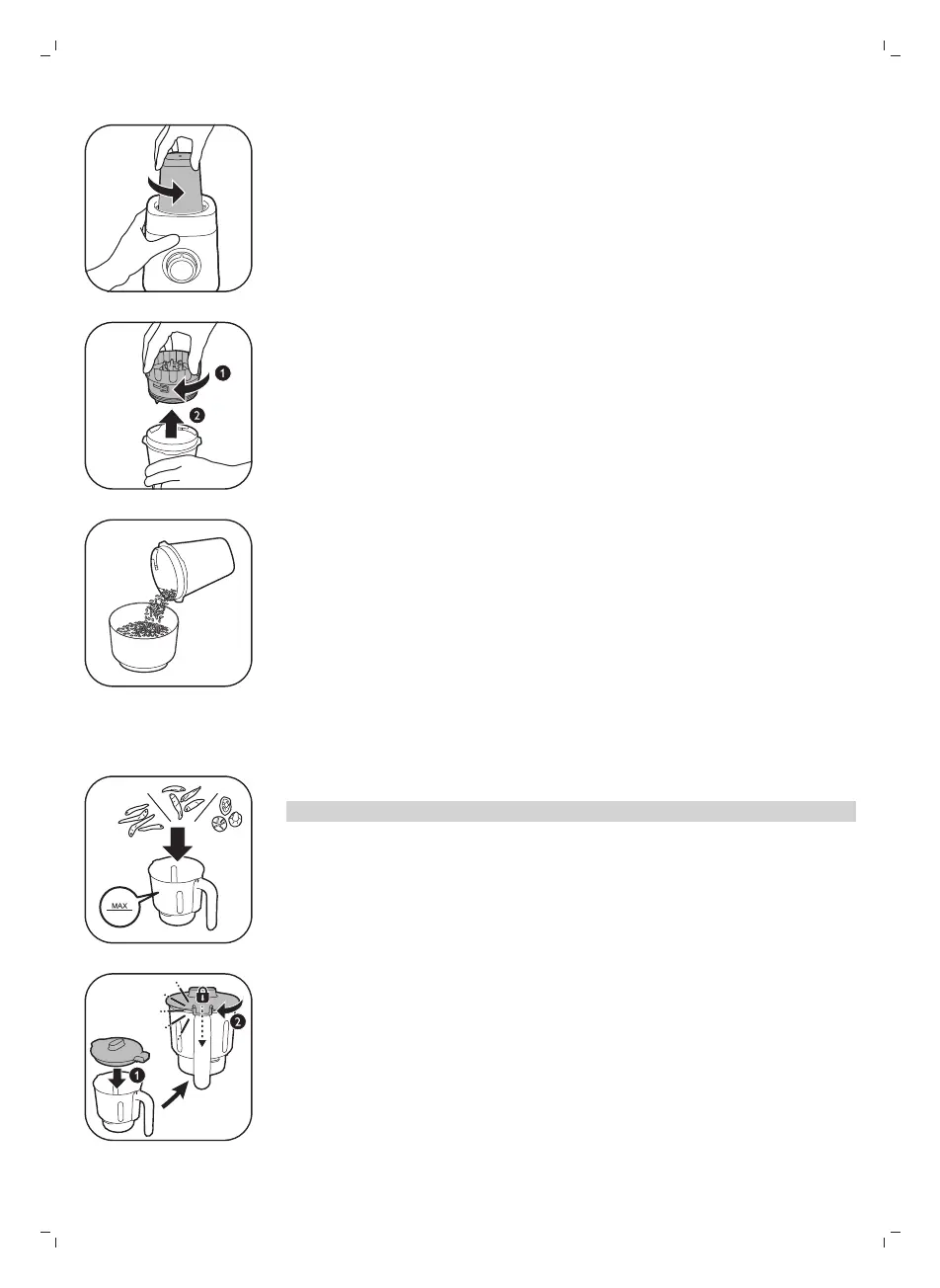 2 Üyüdücü qabının qapağını üyüdücü qabına kilidləmək üçün onu saat əqrəbi