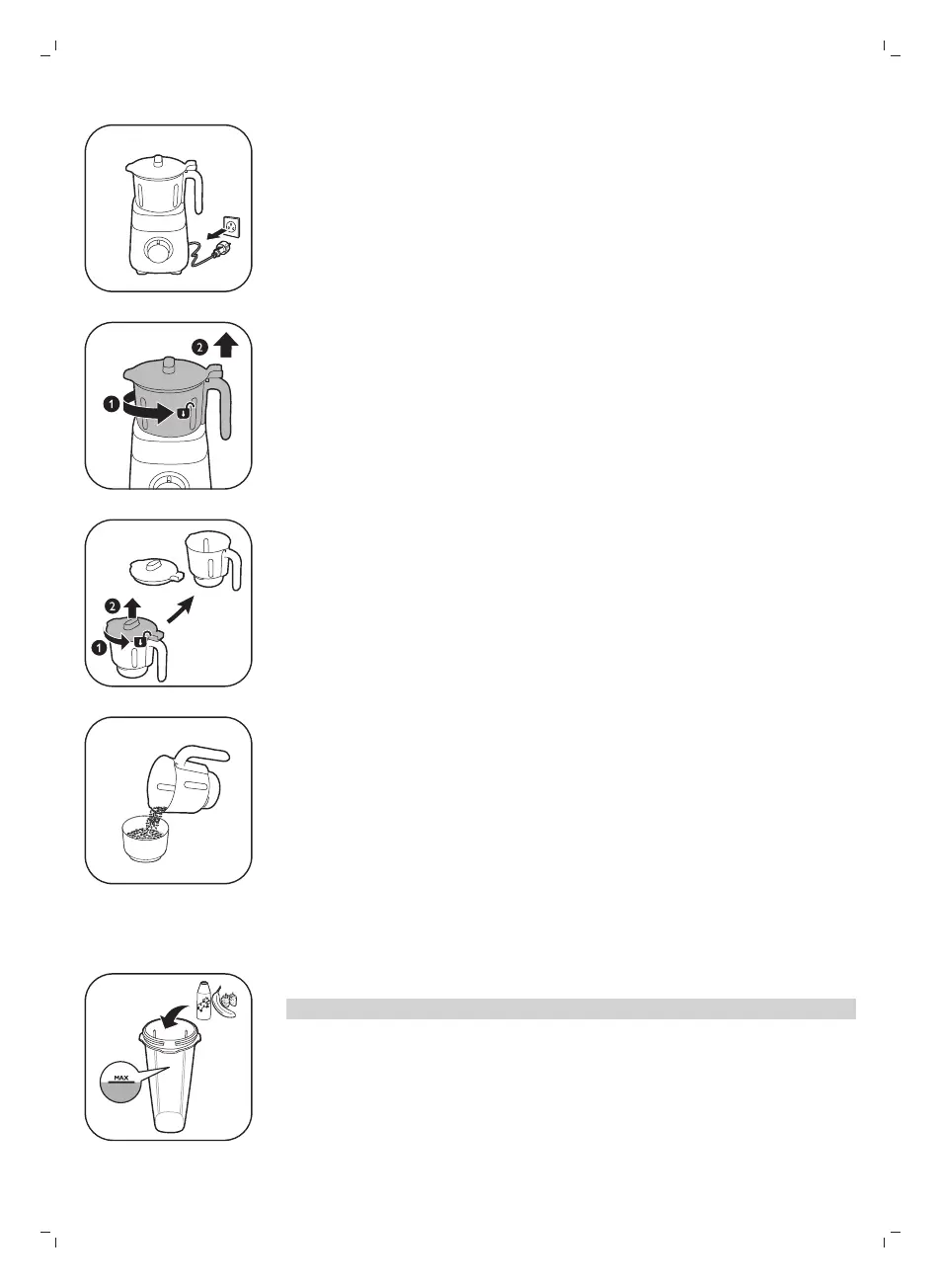 Overskrid ikke den angivne maksimum-markering på beholderglasset.