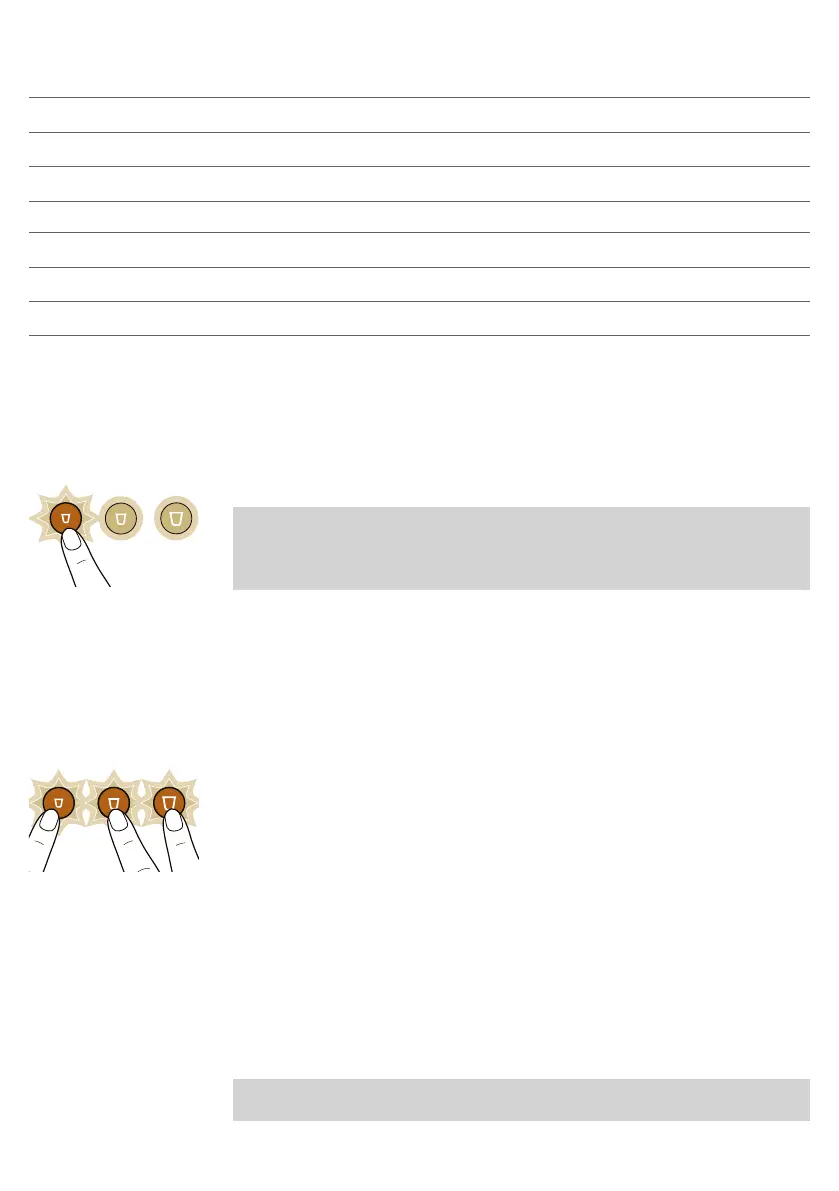 1 Houd een koffieknop drie seconden ingedrukt. De koffieknop knippert snel