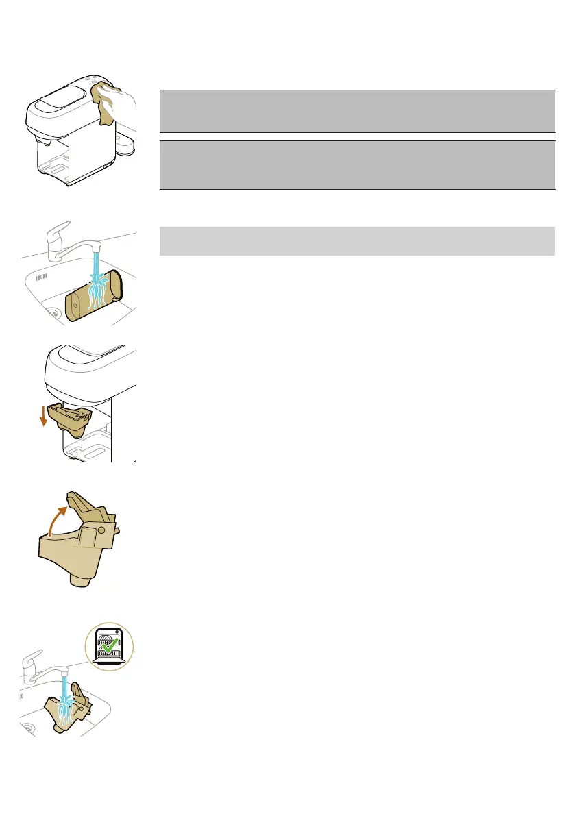 5 Spoel de koffie-uitloop af onder de warme kraan of reinig deze in de