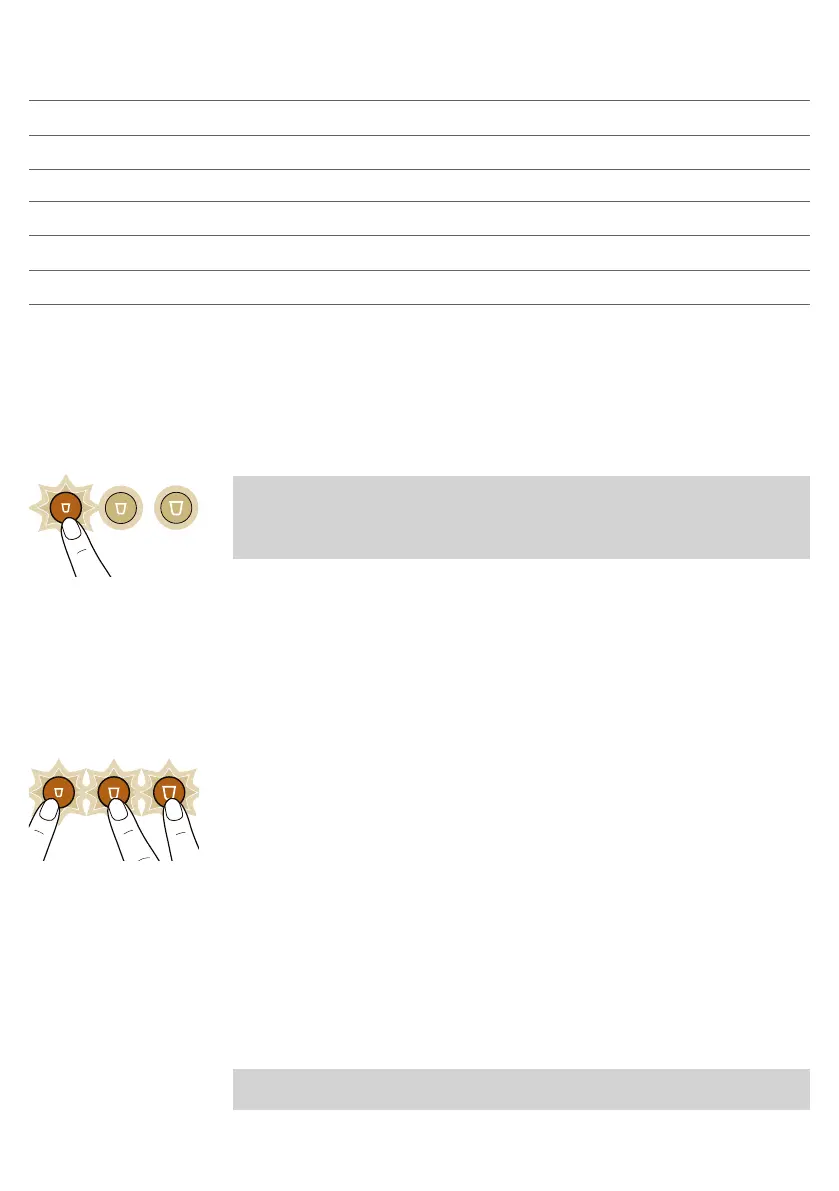 Hold knapperne Ristretto, Espresso og Lungo nede samtidig, indtil alle knapper