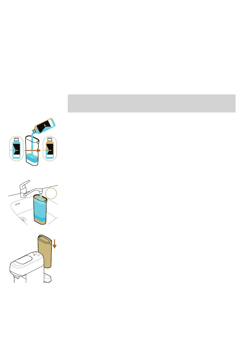 1 Vierte la mitad de una botella de líquido descalcificador en el depósito de