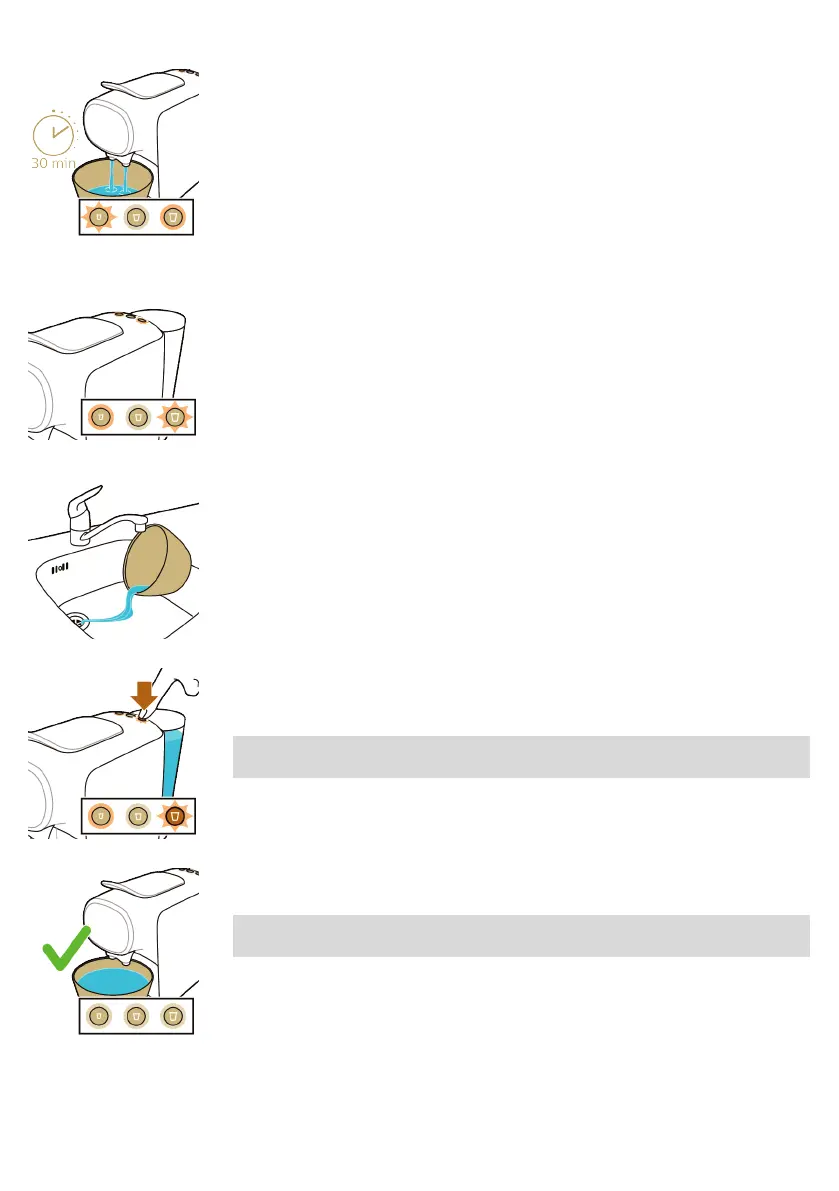 7 La machine verse toute la solution de détartrage à intervalles réguliers. Ce