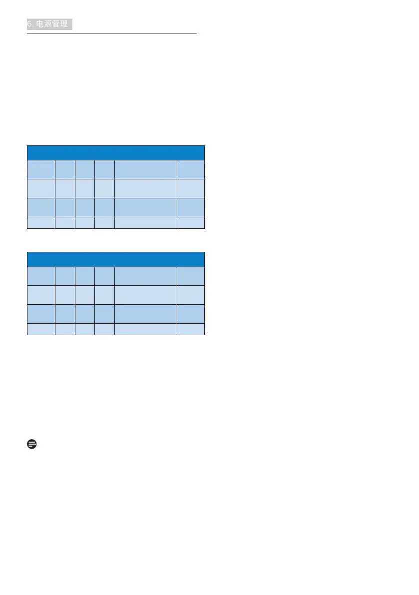 下表介绍此自动省电功能的功耗和信号时