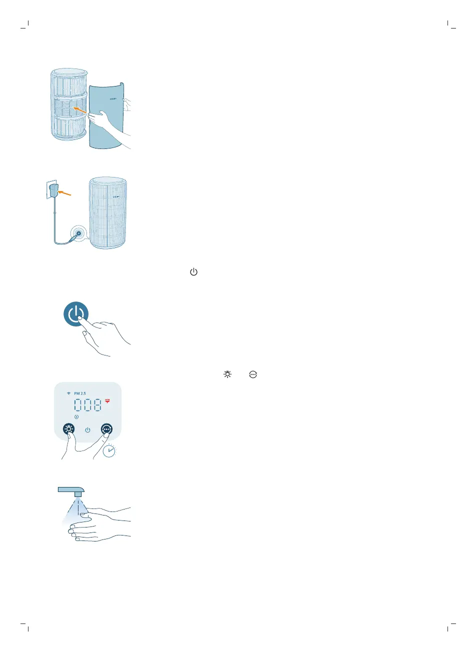 9 Press and hold the and button for 3 seconds to reset the filter cleaning
