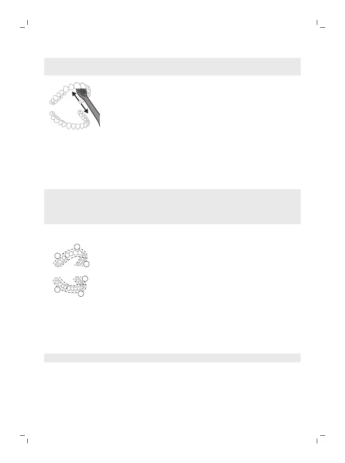 Per pulire le superfici interne degli incisivi, inclinare il manico dello