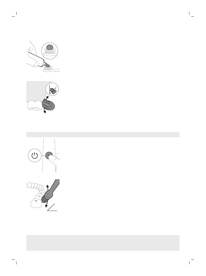 Pressione firmemente para que as cerdas alcancem a linha das gengivas ou