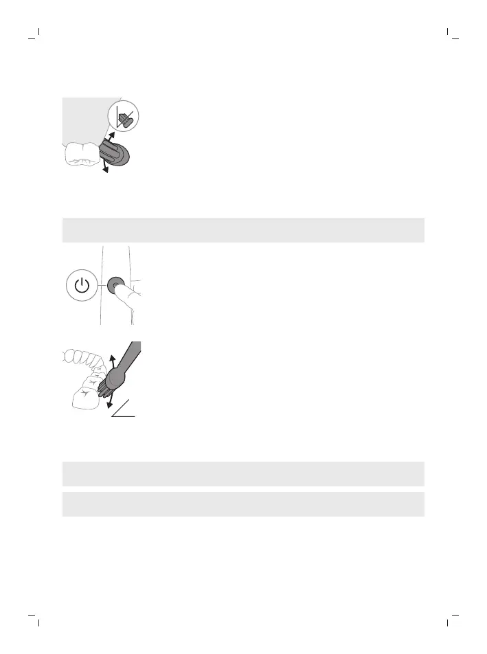 Paina harjaksia kevyesti vasten hampaita ja ienrajaa. Harjaa hampaat pienin