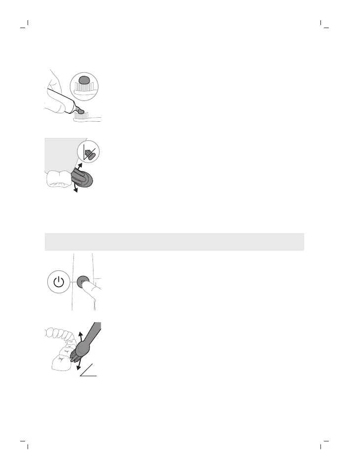 Halten Sie die Borsten sanft auf den Zähnen und in der Zahnfleischlinie.