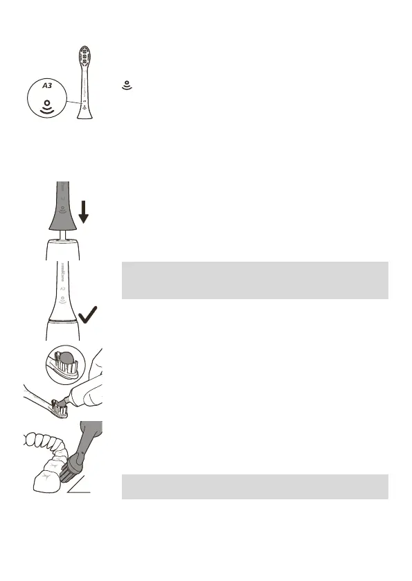 Placez les brins de la tête de brosse sur les dents,