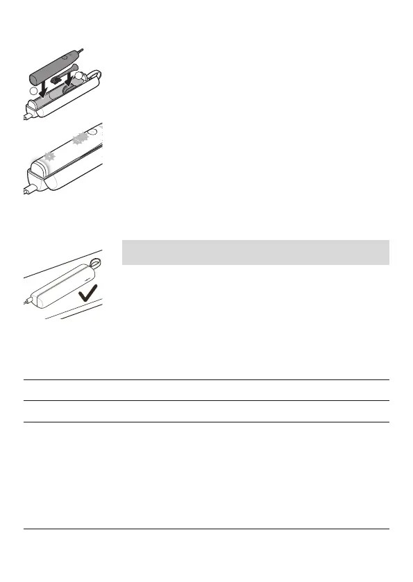 Når skaftet er anbragt i opladeren eller i rejseetuiet,