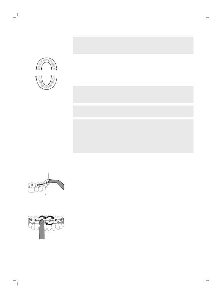 sekitar kawat gigi dengan gerakan melingkar kecil